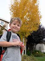 Our tree that sits right out front of our house is so beautiful this week! Check out it's vibrant yellow color. I had Jackson pose for a fall photo shoot and this picture was the best and the last of the session. The ones down below are the best of HIS personality and antics. It is hard to photograph a 3 year old! The nostril flare is my personal favorite.